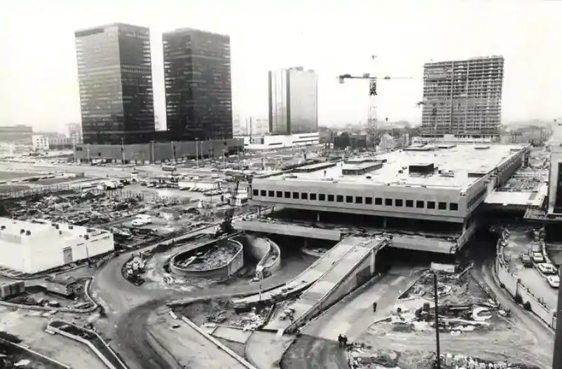 从CentreMonnaie与Philips大楼看火车北站正在建设的“曼哈顿计划”区域(上方被拆除的大片空地区域)