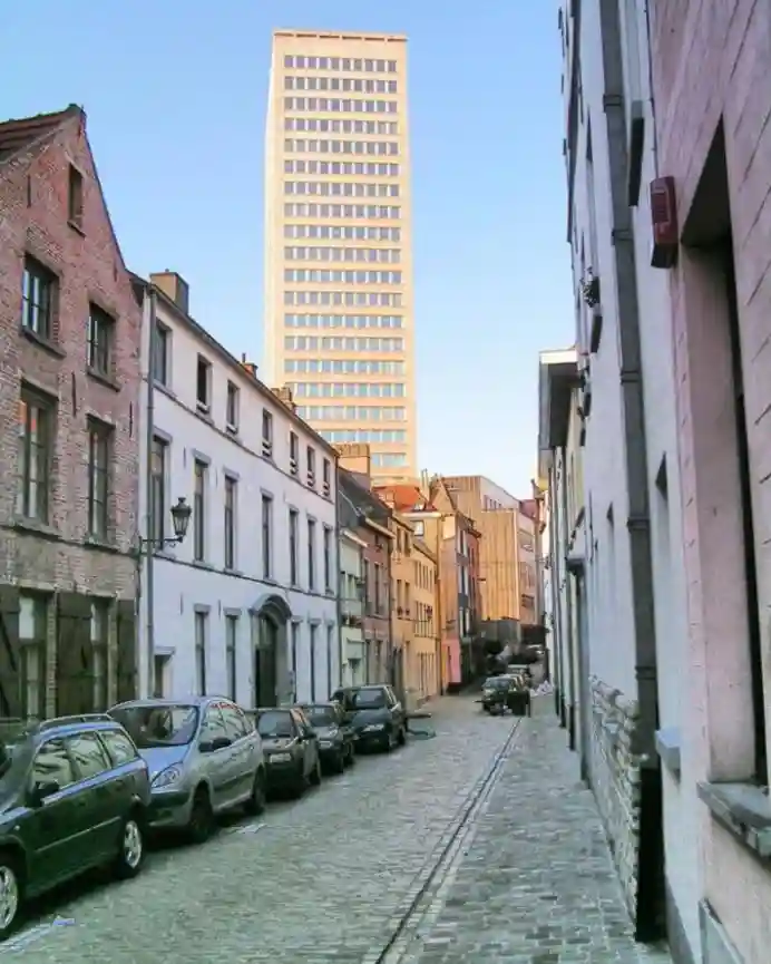 高耸的大楼与布鲁塞尔老城区建筑格格不入